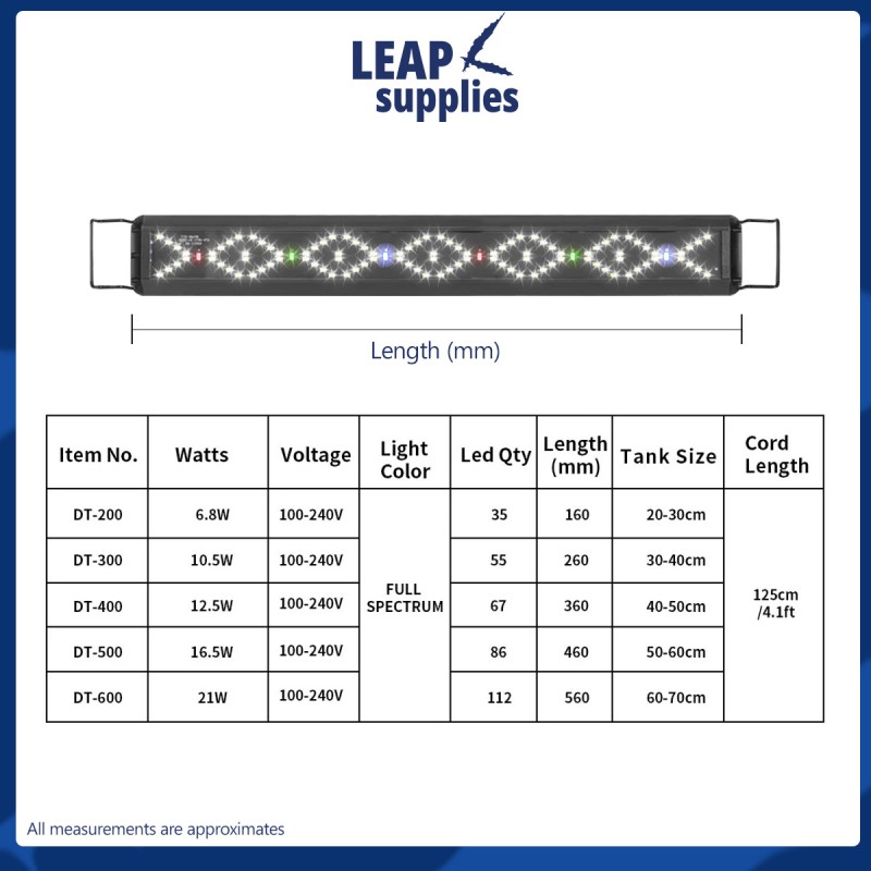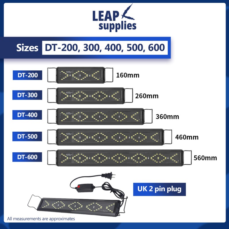 DT-600 This aquarium light blends into just about any aquarium design with its sleek and black frame. With the UK 2 pin plug, it is suitable to be plugged directly to our socket in Singapore. Comes in various length and an adjustable mount, choose one that fits your fish tank.