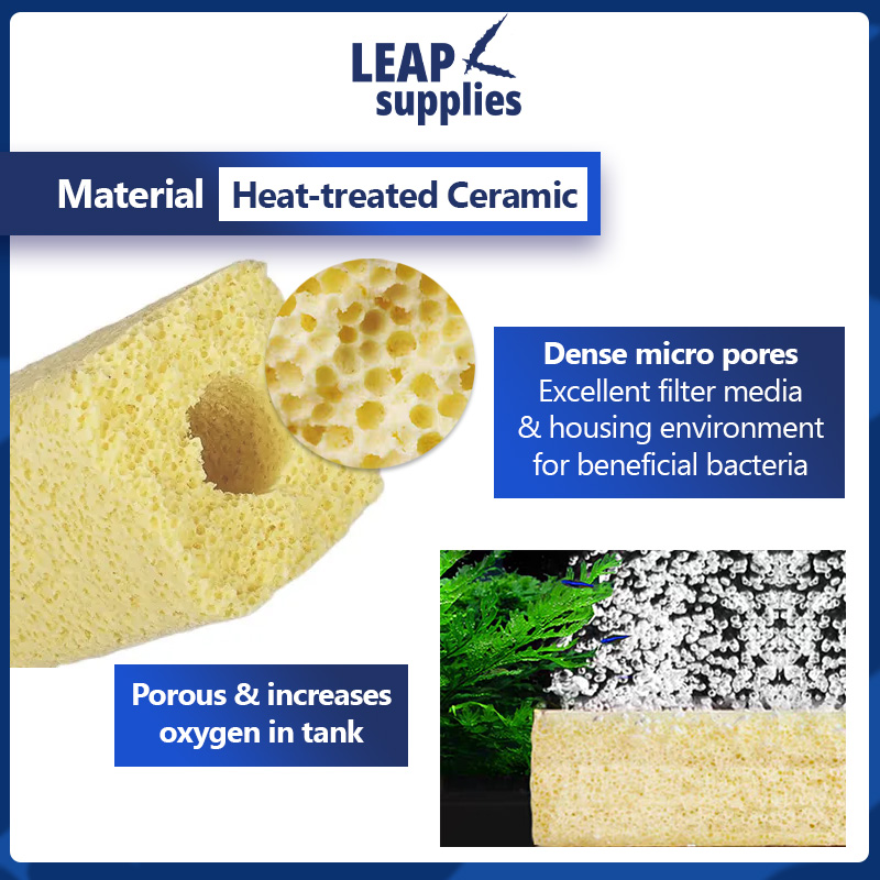 These porous ceramic bio rods is the perfect media for bacteria to grow on. The beneficial bacteria can easily house on the rough surface, allowing you to cultivate bacteria that helps with breaking down ammonia and nitrite in the tank. This works for both marine and freshwater aquarium, and is usually placed in overhead filter or the sump tank.