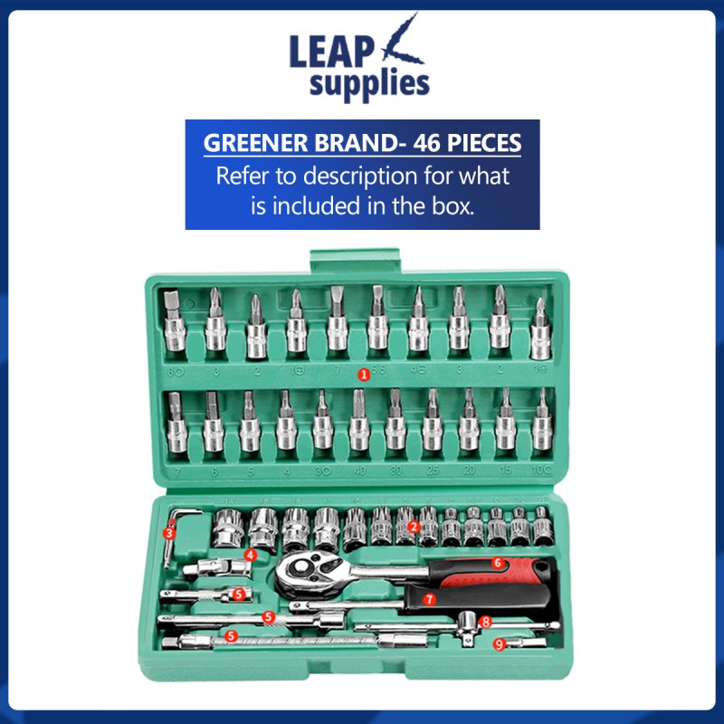 Greener Ratchet Set, small enough for you to do your bicycle repair with a range of sizes for hex (Allen), cross (Philips), Torx and flat tip bolts or nuts. Fix up your bicycle or any other household appliances easily with this tool set.