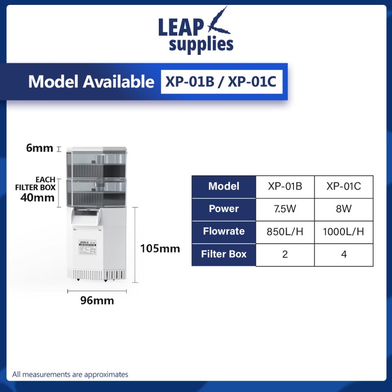Flow Rate: 850L/H (XP-01B) / 1000L/H (XP-01C)