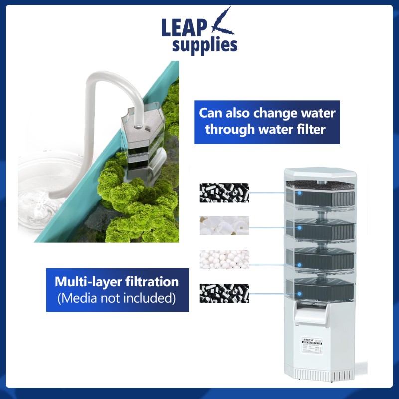 Turtle tanks may be hard to maintain because pumps do not work well at low water level. However, this Jeneca pump is built exactly for this purpose, to operate at low water levels. With either 2 or 4 filter compartments, you can have this setup to filter water and keep the turtle tank clean.