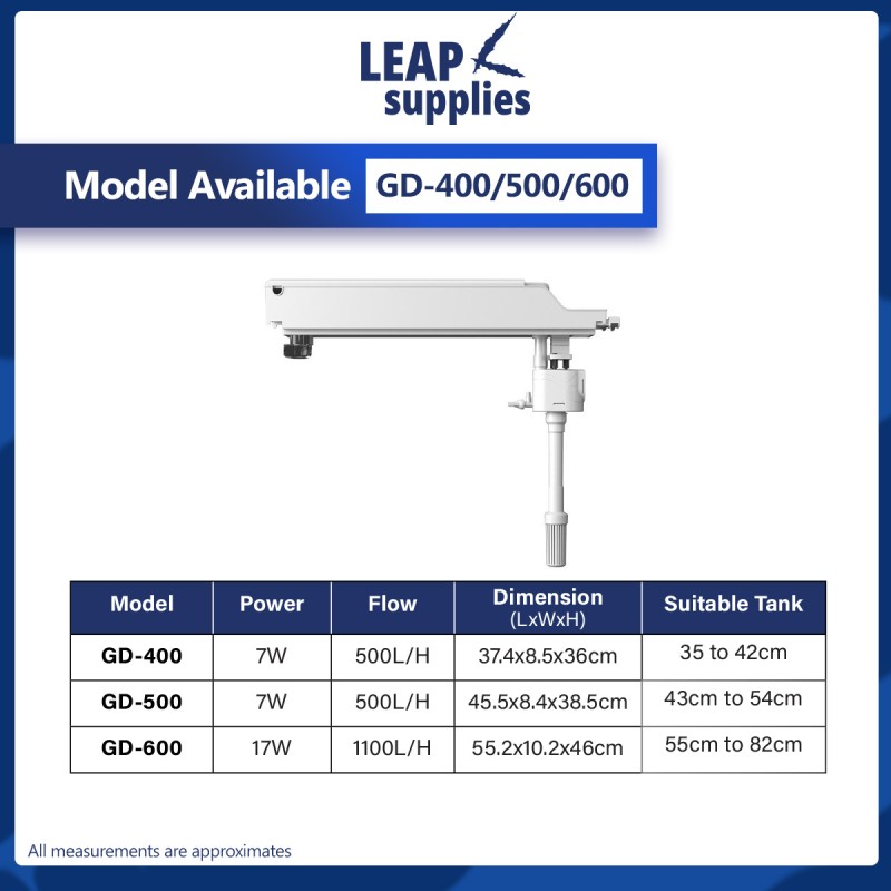 Tank Size: 35 to 42cm (GD-400) / 43cm to 54cm (GD-500) / 55cm to 82cm (GD-600)