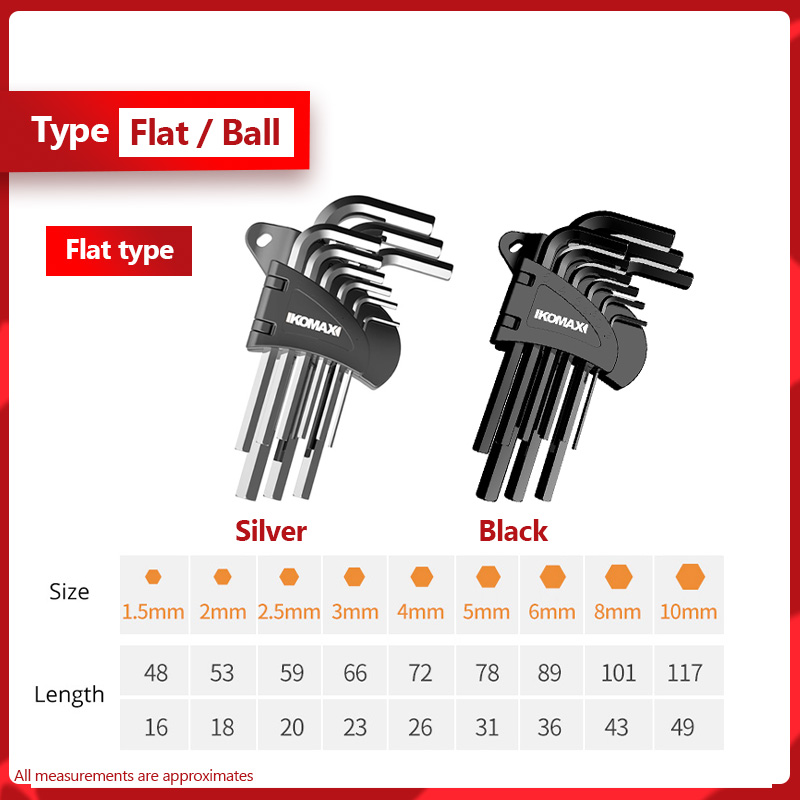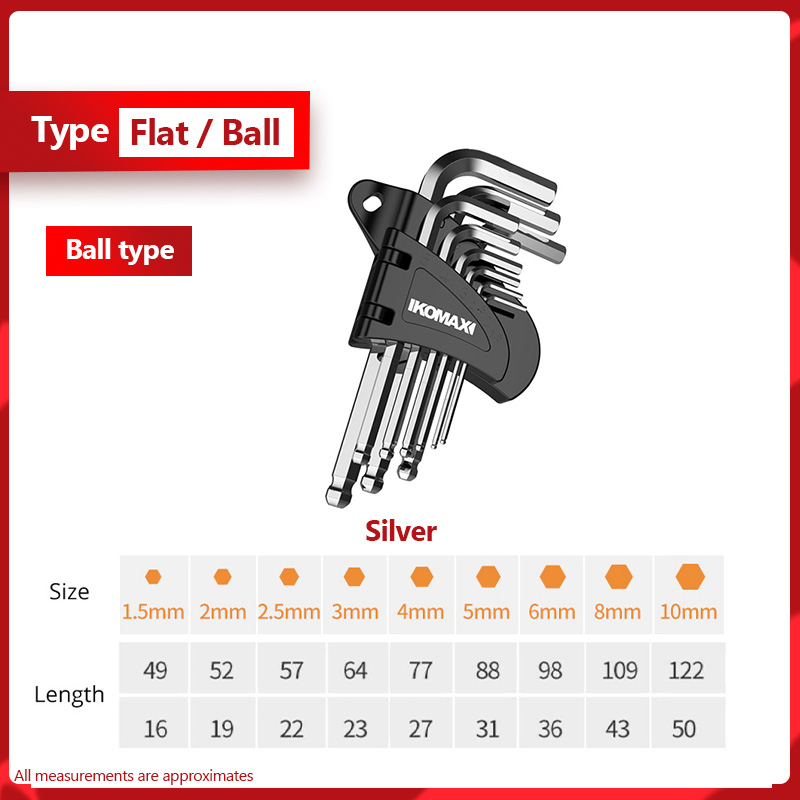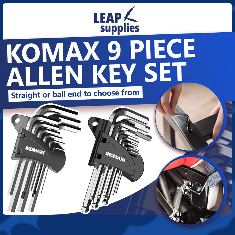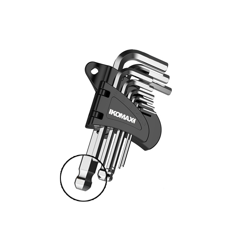 9 piece allen key set for most common use at home. Repair your bicycle or tighten a couple of screws, this allen key set is useful at home! Comes in two variations, a straight end or a ball end. A ball end makes it much easier to use if you are frequently tightening or loosening screws.