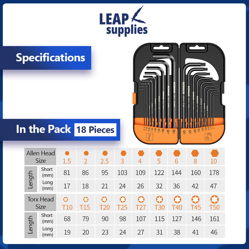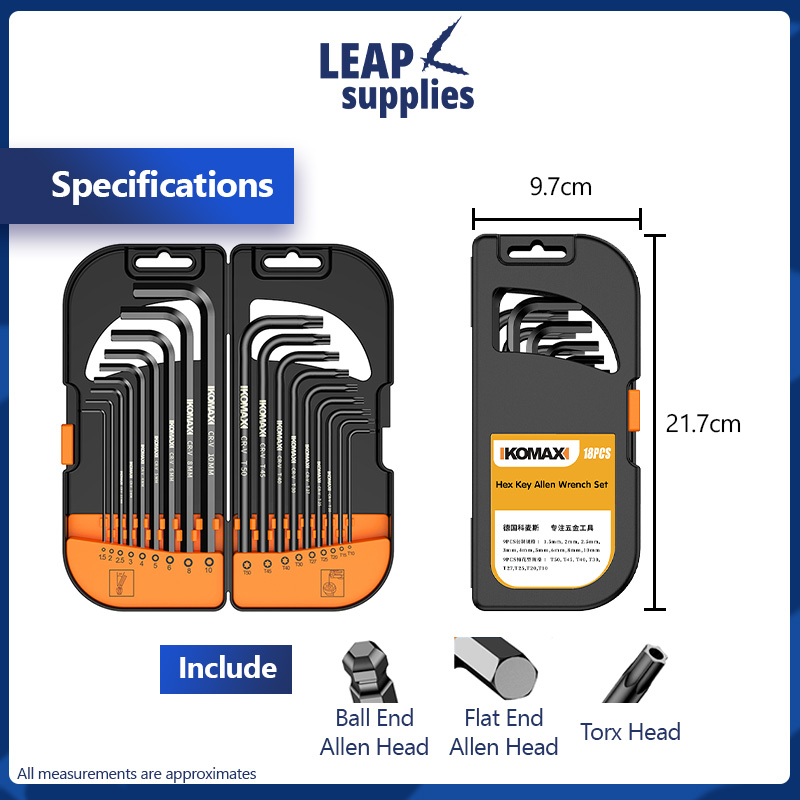 The Komax Allen Torx Key Set is a durable and reliable choice for your tool collection. Its hard steel construction reaches a hardness of HRC62, ensuring its strength and longevity. With a wide range of sizes included, this tool set can be used on various home appliances and furniture that require an Allen key.