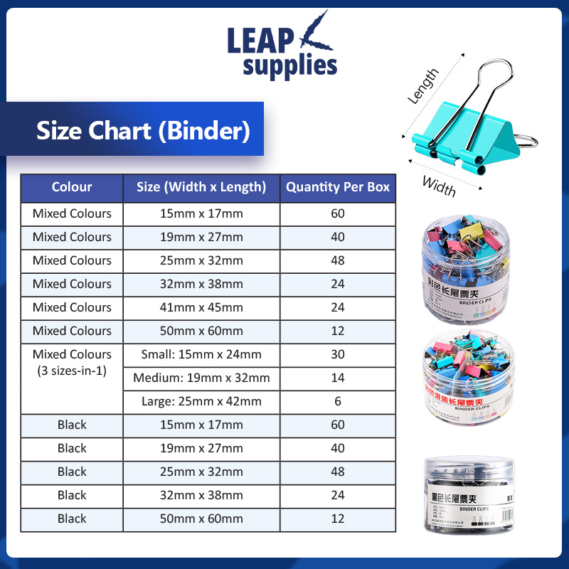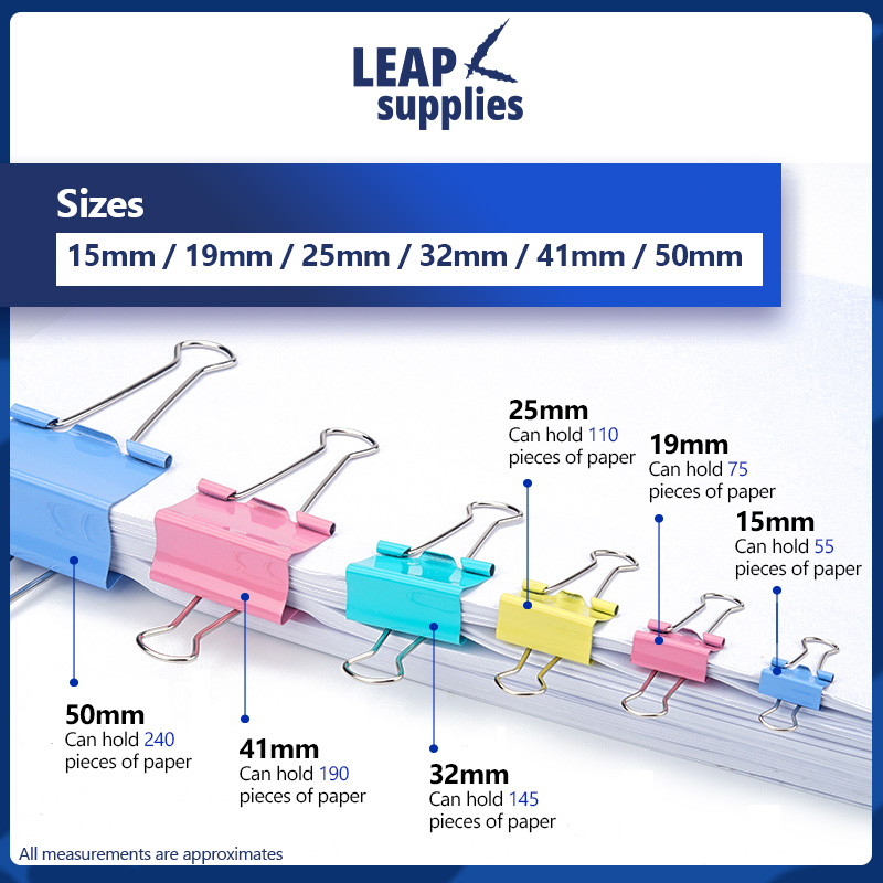 LEAP Binder clips are a versatile and practical office supply that can be used to keep papers organized, hold materials together, and even hang items for display.
