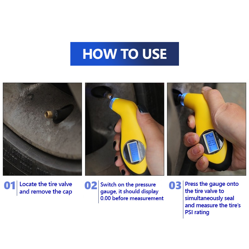 Check your tyre pressure easily with this small hand held digital pressure gauge. No hassle, simply plug and play to check your tyre air pressure. The tyre air pressure gauge can be used for your bicycle, car, motorcycle or even the e-bike!