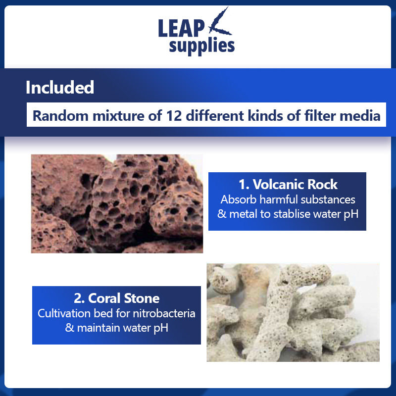 What's better than using bio filter to keep your aquarium tank water crystal clear? This 12-in-1 filter media has various kinds of rocks, such as volcanic rocks and bio rings. It is also an easy way to cultivate beneficial bacteria, being a bacteria house. Keep healthy pet fishes with the 12-in-1 filter media.