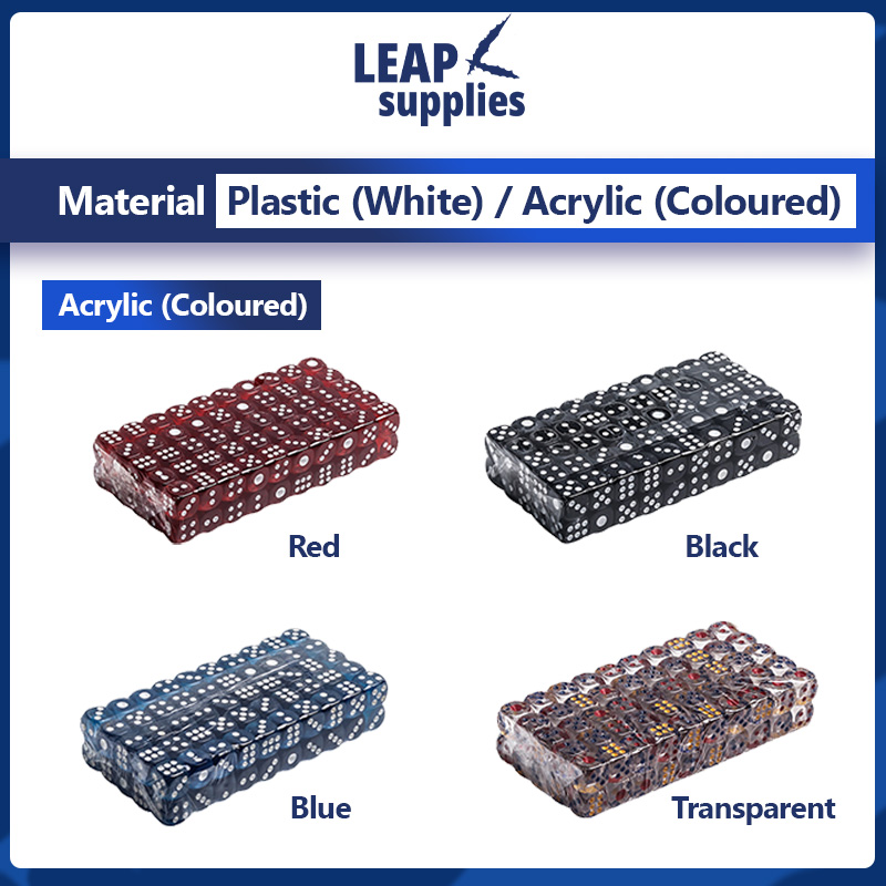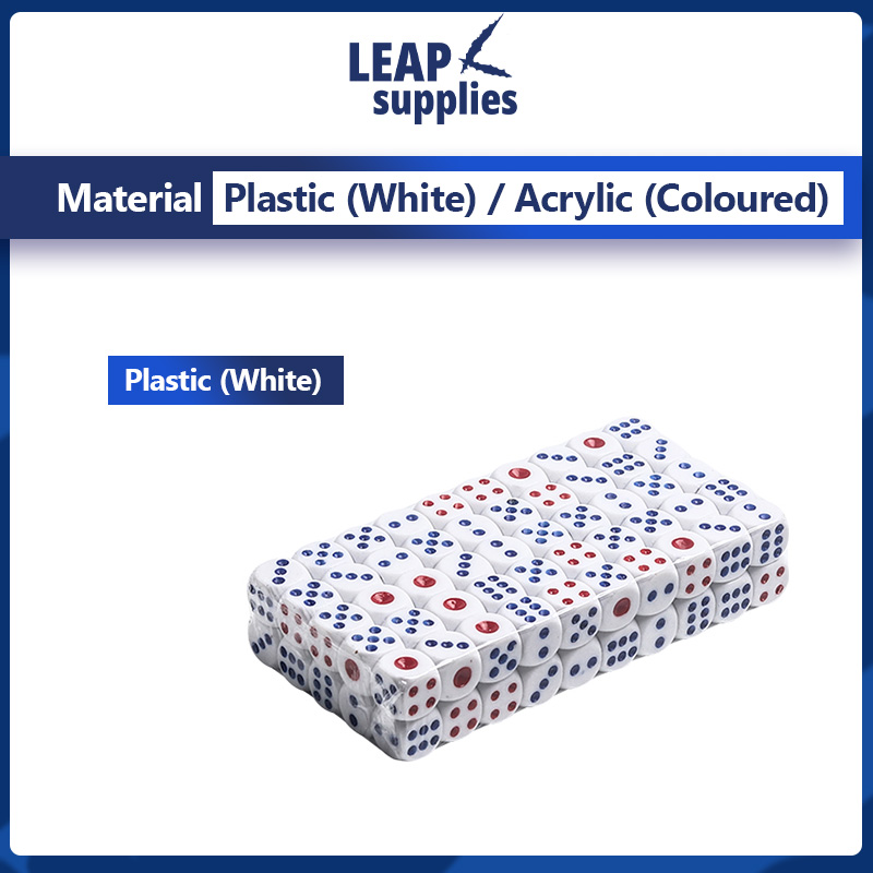 Upgrade your game nights with the LEAP Game Dice. Whether you prefer the classic look of standard white plastic dice or the vibrant colors of acrylic, these dice are perfect for all your gaming needs. Roll with confidence knowing that these dice provide fair, accurate results every time.