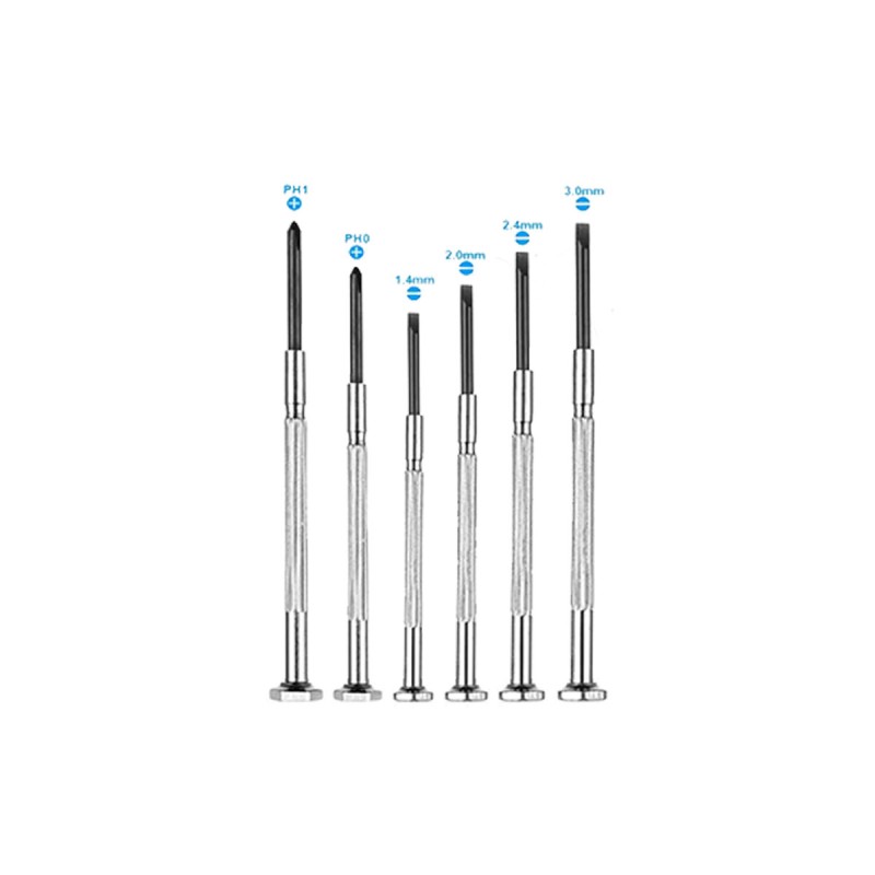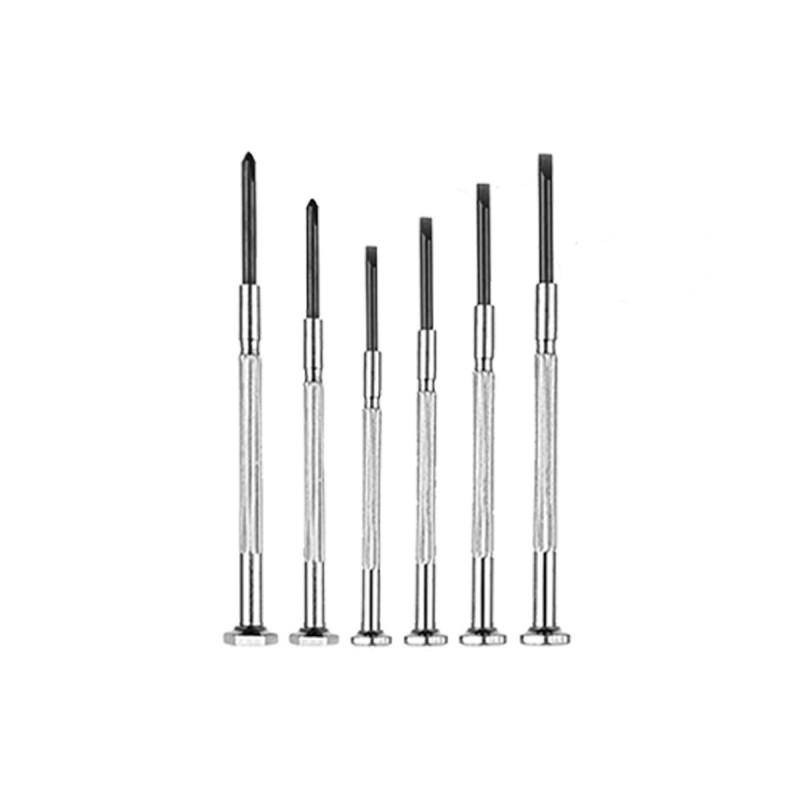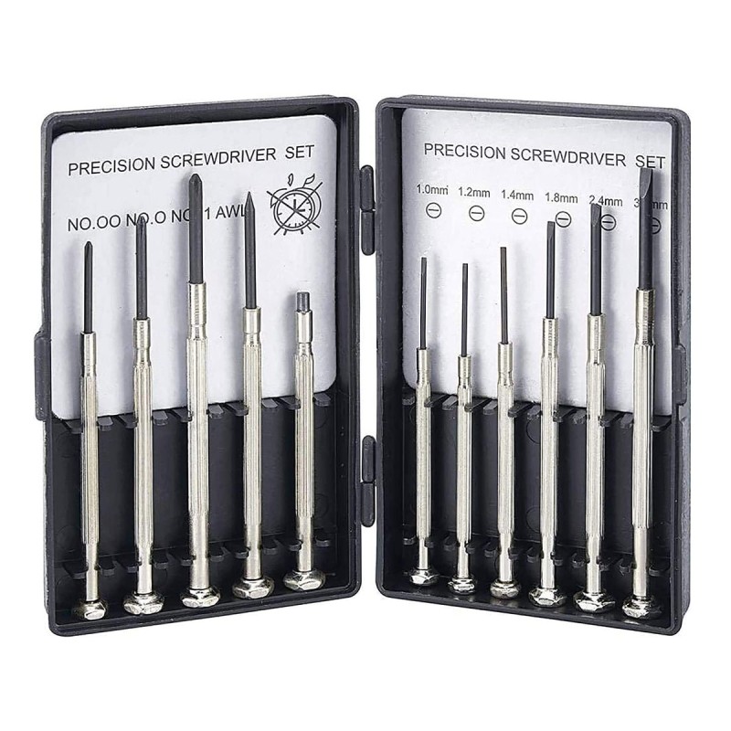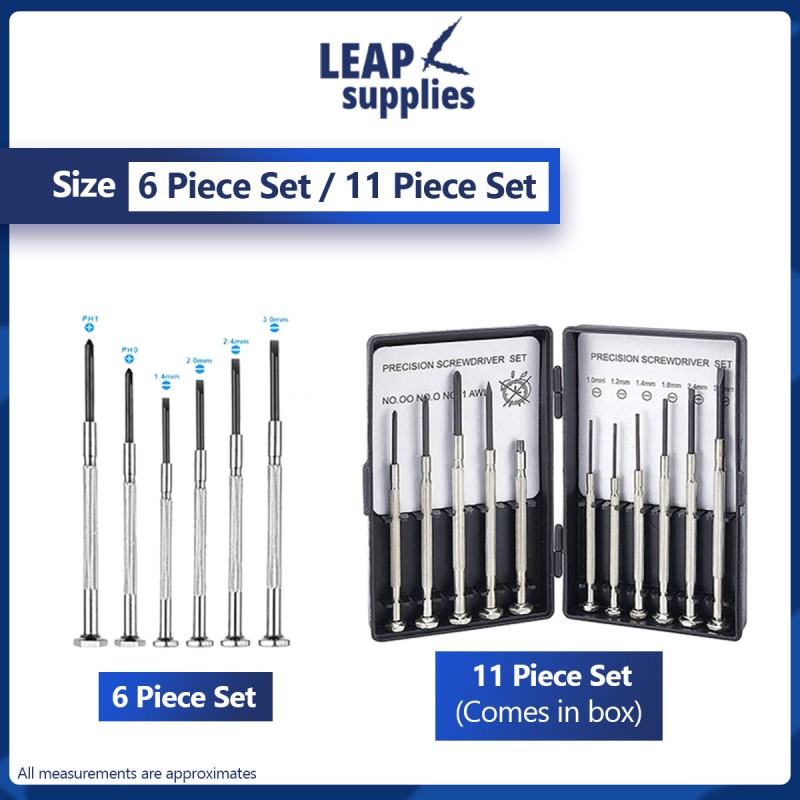 6 or 11 piece precision screwdriver set for the mini screws. Great to use on intricate item with small screws such as watches, jewelry, laptop or smartphone. Two options to choose from, box or set without box. If no box is chosen, the set of screwdrivers will be in a plastic bag without the box.