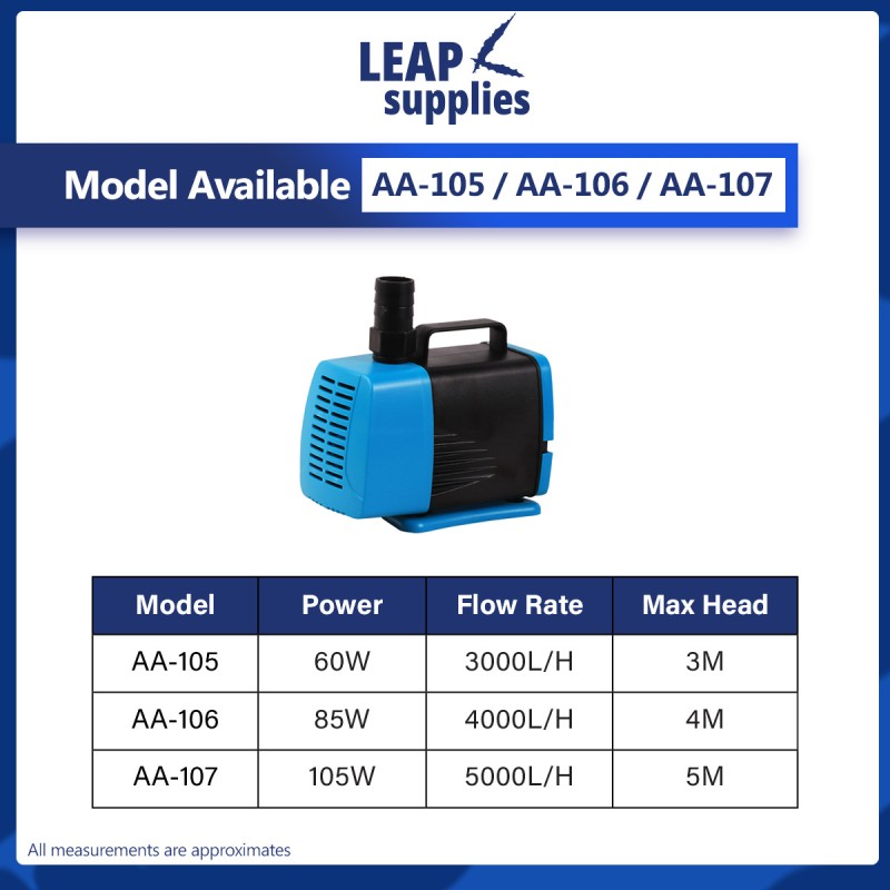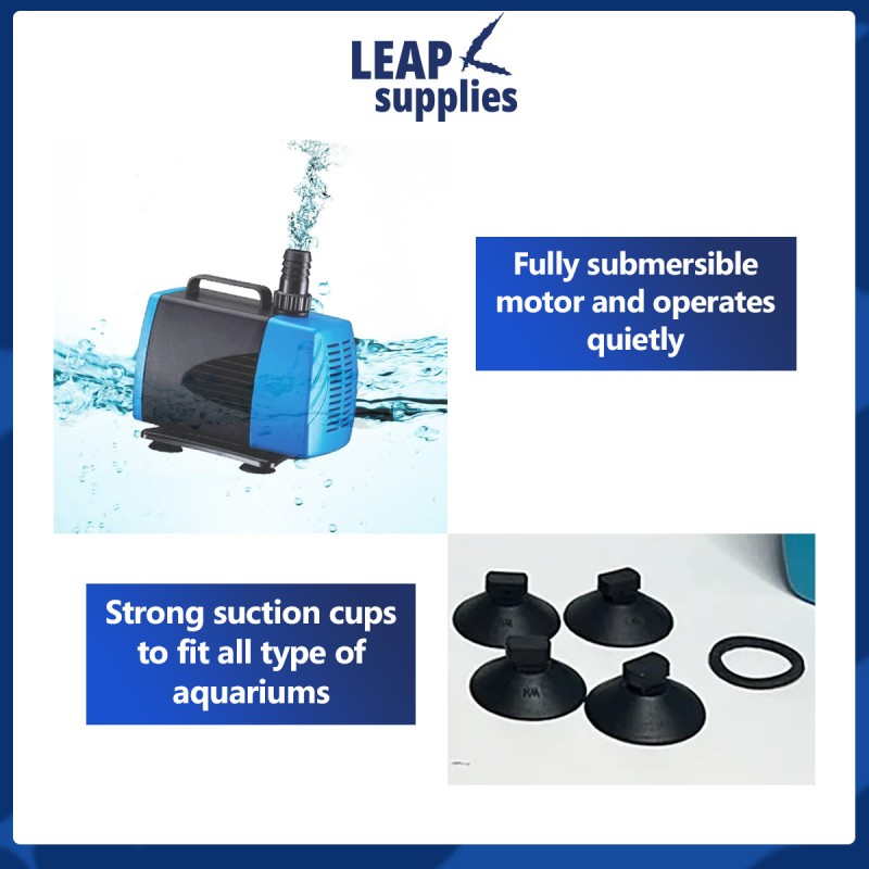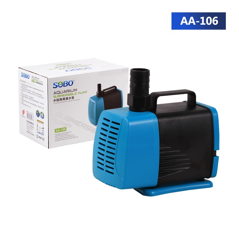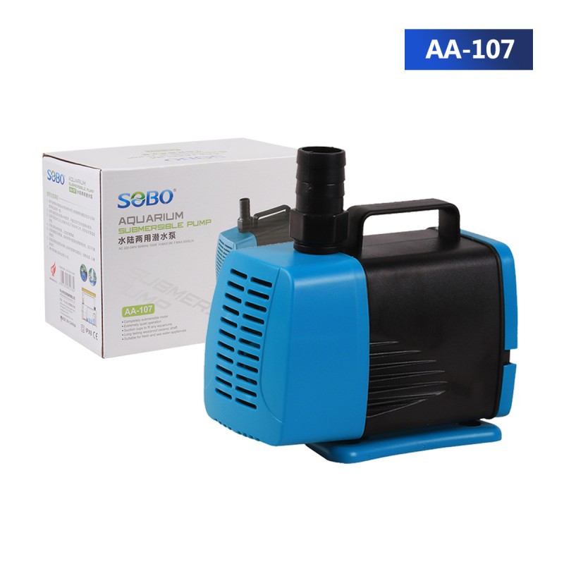 The SOBO Aquarium Submersible Pump can either be used in the tank or externally in a sump tank. Fully submersible and comes with strong suction cups that allow you to attach to any type of aquarium.