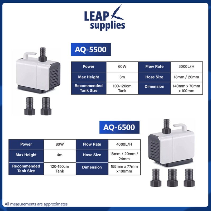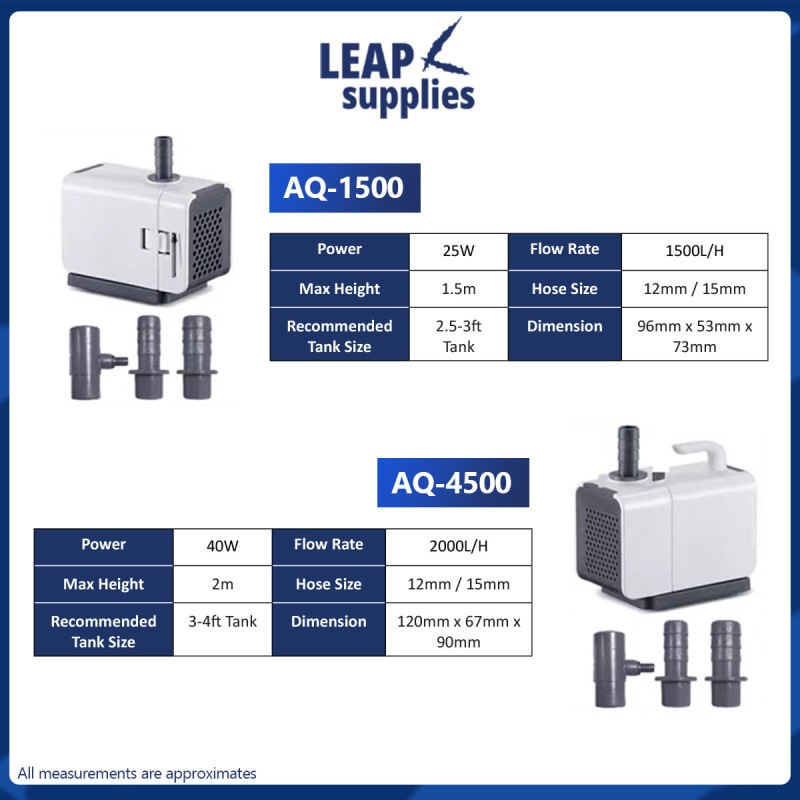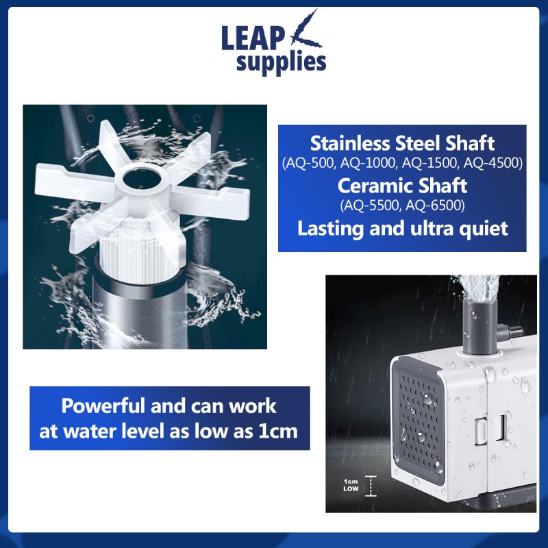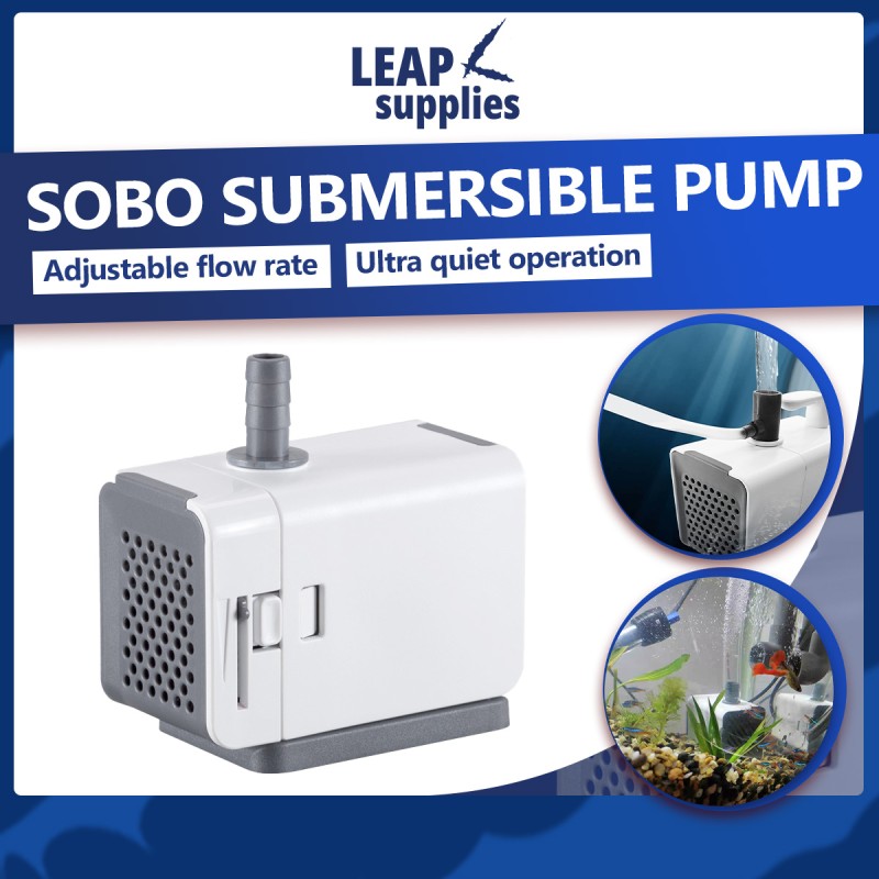 SOBO Submersible Pump for your sump tank or aquarium tank with a bottom filter. Powerful and works at low water level, this pump is a must have for your tank. You will no longer be faced with the common issue of low water level damaging your water pump. The suction cups at the bottom of the pump also ensures it remains stable and reduces vibration noise. Stainless Steel and Ceramic shaft, this ensure the pump last longer too.