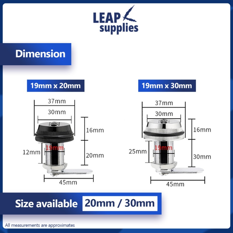 19mm cabinet combination lock. Can be easily unlocked with a 3 digit PIN. The numbers can be reset with just a push of the reset button too. Easy to install and operate. Comes in two colours to match your cabinet / locker box.