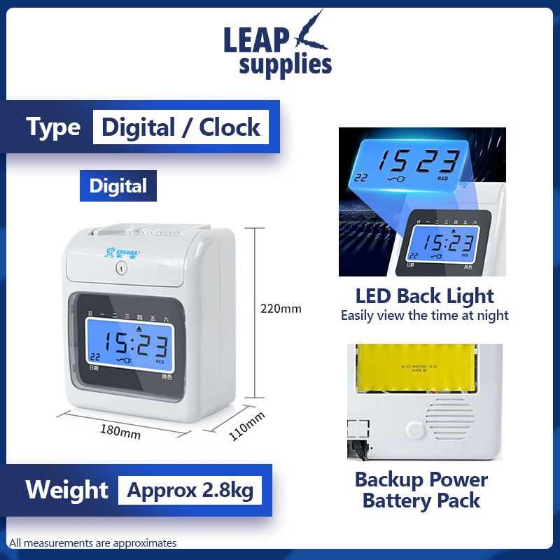 Keep check of your staff's arrival and dismissal time or the time your kids reach home after school. The time recorder punch card machine allows you to punch the timing onto the card, indicating the timing in red or black, having red as being late or early. Configurable red and black timing, as well as alarm clock.